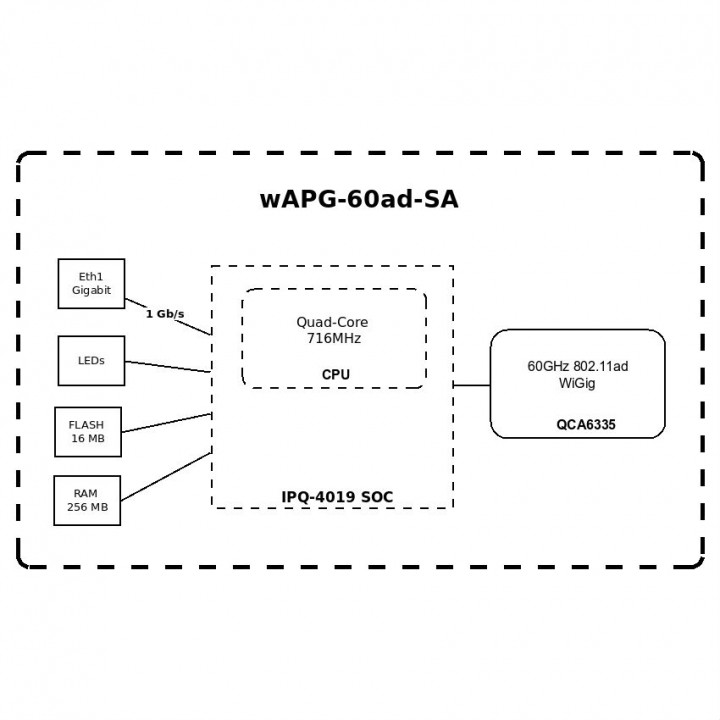 По сравнению с wAP 60G AP имеет совершенно новую антенную решётку с гораздо более широким углом охвата.