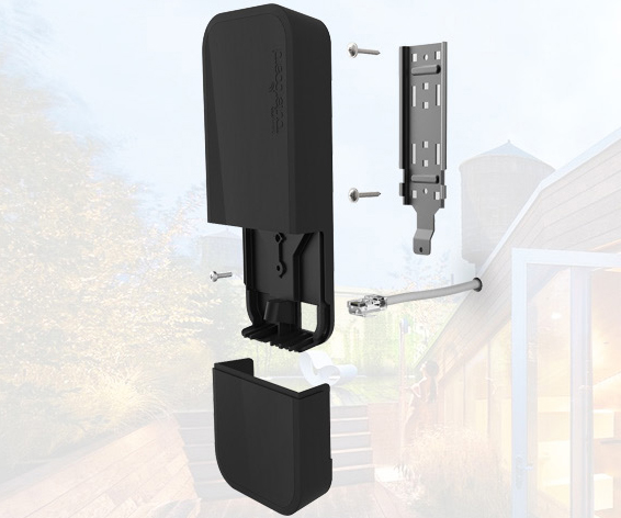 Крепление к стене осуществляется внутри корпуса устройства, а нижняя часть крышки защищена специальным болтом, который может быть отвинчен только владельцем.