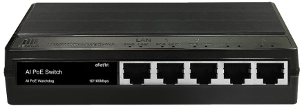 5 портовый неуправляемый PoE коммутатор, 4 × 100 Мбит/с PoE портов (3 порта 802.3af/at, максимальная мощность PoE 30 Вт на порт, 1 порт 802.3af/at/bt, максимальная мощность PoE 60 Вт на порт) + 100 Мбит/с порт Uppnk. Общий бюджет PoE 60 Вт. Автоматический PoE watchdog, встроенный блок питания, грозозащита и защита от статического электричества, -30...+60°С.