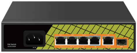 6 портовый неуправляемый гигабитный PoE коммутатор, 4 × 1000 Мбит/с PoE порта (3 порта 802.3af/at, максимальная мощность PoE 30 Вт на порт, 1 порт 802.3af/at/bt, максимальная мощность PoE 60 Вт на порт) + 1 × 1000 Мбит/с порта Uppnk+1SFP. Общий бюджет PoE 60 Вт. Автоматический PoE watchdog, автоматический выбор длины линии и скорости работы (до 130 м скорость 100 Мбит/с, от 130 м до 250 м скорость 10 Мбит/с), встроенный блок питания, грозозащита и защита от статического электричества, -30...+60°С.