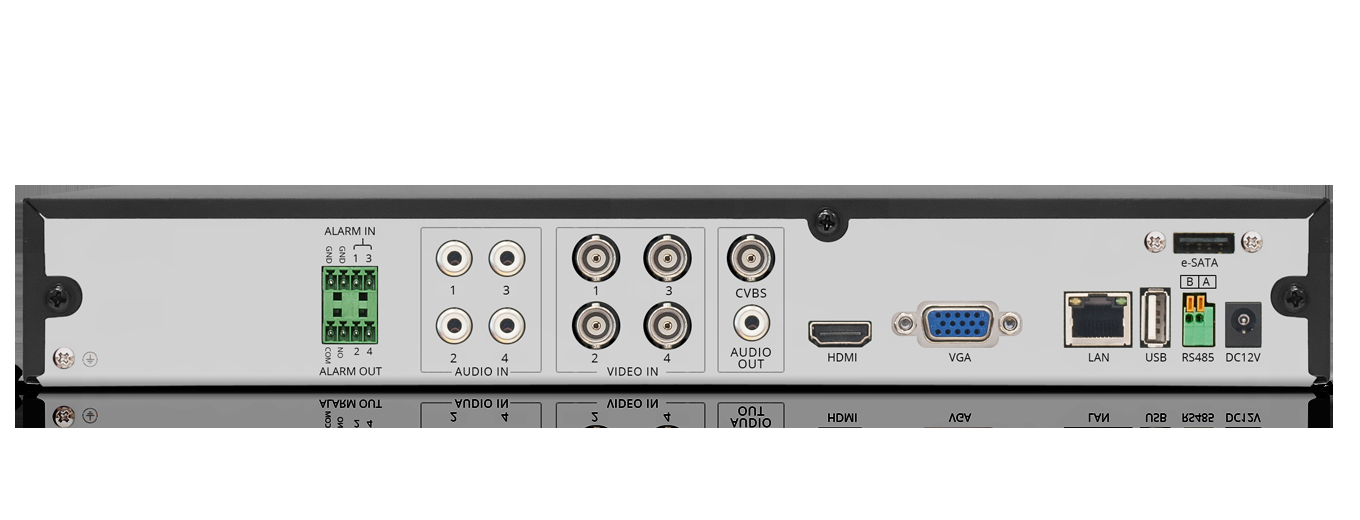 Профессиональный гибридный сетевой 4х-канальный (4 BNC + 4 IP ) + 4 канала звука видеорегистратор, пентаплексный режим работы, скорость отображения 100 к/сек, скорость записи до 100 к/сек (5MP — 50к/c); H.265; поддержка форматов: TVI/AHD : 8MP/5MP/4MP/3MP/1080P/720P/WD1 CVI : 4MP/3MP/1080P/720P/WD1 / IP ( 2-4 канала, до 8MP, ONVIF 2.4), поддержка функции Control Over Coxial cable, BitRate 32Kbps ~ 4Mbps; режимы записи: ручной, по расписанию, по контактам, по движению; одновременное воспроизведение до 4 видеоканалов, HDD 1хSATA до 10ТБ(поставляется без диска), порт USB2.0х2шт для подключения внешних устройств, Ethernet 100MB (16/40Mbps), WEB-интерфейс, iOS, Android, ОС на flash memory, русифицированное меню, управление: ИК контроллер, мышь USB (в комплекте);мониторы: основной — HDMI × 1(4K/ до 3840 × 2160)/VGA, дополнительный BNC × 1, порт RS-485 х 1шт., трев.входы — 4шт, выходы 1шт, ~100-240В (б/п в комплекте), 300х248х52 мм