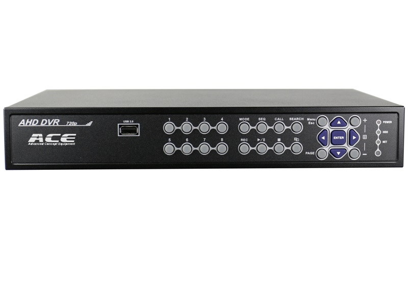 ACE DA-1800 720P/960H/D1;Гексаплекс, 8 кан. видео.4вх./1вых. аудио, ОС Linux; H.264; 100к/с (720P),200 к/с (960х576), 200 к/с (704х576); автоопределение,настройка разрешения, скорости и качества записи для каждого канала. 1 HDMI ,1 VGA ,1 CVBS; 8 тревожных вх., 1 вых.; встроенный WEB-сервер;TCP/IP, HTTP, PPPoE, DHCP, DDNS, FTP, TSP, NTP, RTSP, P2P Dual stream; 1 HDD до 4 Tb (в комплект не входят); eSATA,100 Mb Ethernet; 2 USB; RS-485; PTZ PelcoD/P, Samsung,и др;GPS, POS, 3G- USB,клиент для iOS, Android; DC12B/3А-36W, БП, ИК-пульт и "мышь" в комплекте, 320х210х50;2 кг.; t=0C+40C.