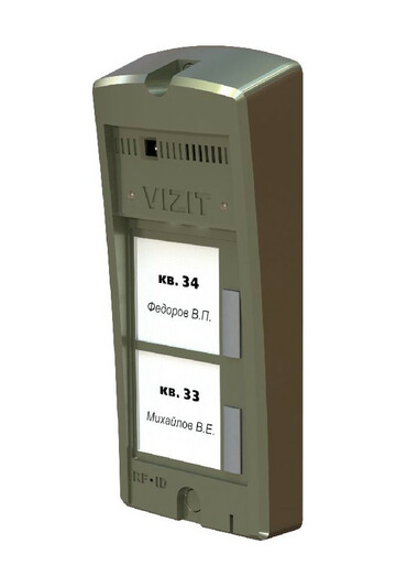 Блок вызова до 100 абонентов. Накладной монтаж. Функции кодового замка, контроллера ключей RF (100 индивидуальных кодов, 600 ключей VIZIT-RF2). Свето