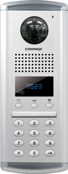 Единственным отличием вызывной панели Commax DRC-GAC/RF от своего «младшего брата» DRC-GAC является наличие считывателя RFID-карт. Это позволяет реализовать доступ не только путем обычного набора последовательности цифр на клавиатуре панели, но и путем считывания кода со специальной HID-карточки или брелка.