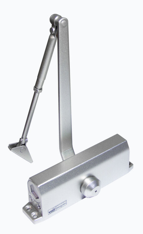 Доводчик дверной для двери весом 65 кг, рычаг с квадратным отверстием, цвет: серебряный.Температура застывания гидравлической жидкости -60°С (КНР).