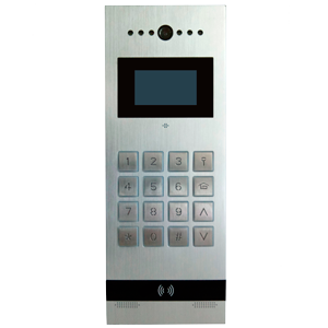 Вызывная панель с разрешением камеры 2мп и CMOS сенсором, 4,3-дюймовый IPS Экран; разрешение экрана 800 × 480, WDR 120дБ; Алюминиевая анодная поверхность; металлические кнопки; IC-карты; IP65; Рабочая температура: от -30 ° C до + 60 ° C; DC12В.