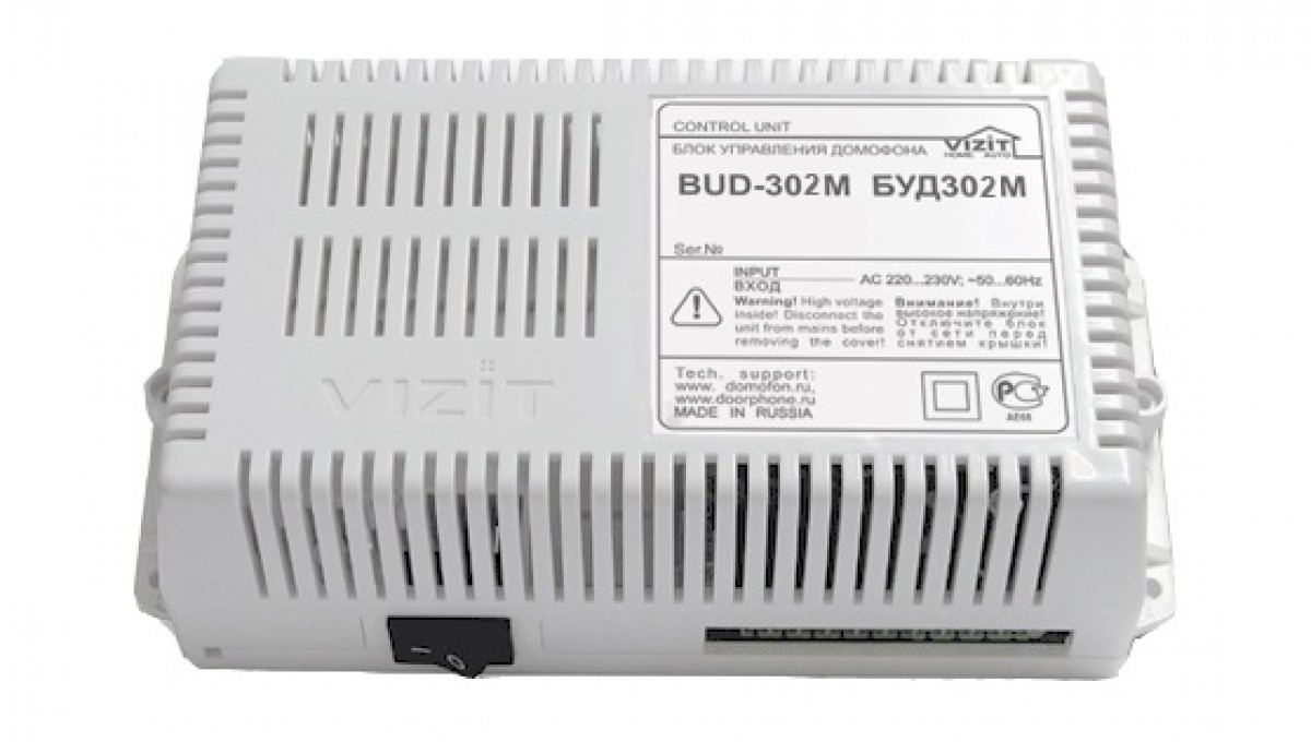 Блок управления и питания домофона серии 300. Напряжение питания 190-240VAC. Емкость до 200 абонентов. Функции: контроллера ключей ТМ и RF (до 2400 шт.). Рекомендуется устанавливать в монтажные боксы VIZIT.