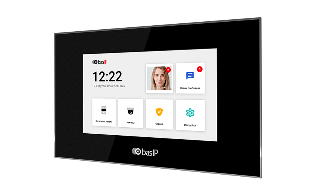 Диагональ экрана - 7 дюймов Управление - Сенсорный экран Питание - 12В или POE Установка - на стену Подключение к подъезду - BAS-IP Запись фото на внутреннюю память (64 фото) Мобильное приложение - BAS-IP Intercom (бесплатное)