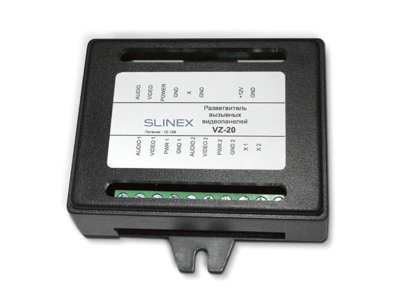 Коммутатор модели VZ-20 производства компании Slinex служит для расширения частных домофонных систем с помощью подключения дополнительных видеопанелей. Так, на канал видеодомофона можно подключить два устройства. Оборудование подходит для всех панелей, имеющих стандарт «Commax». Благодаря специальной перемычке коммутатор позволяет просматривать видео в двух режимах, а именно, только на первой панели вызова или с последней активной панели.