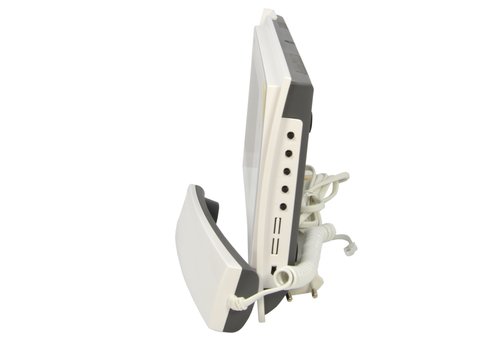 Домофон состоит из видеомонитора, который является его основной частью и кнопок для открытия двери и просмотра изображений. Аудиосвязь осуществляется посредством специальной трубки, которая входит в комплект устройства.