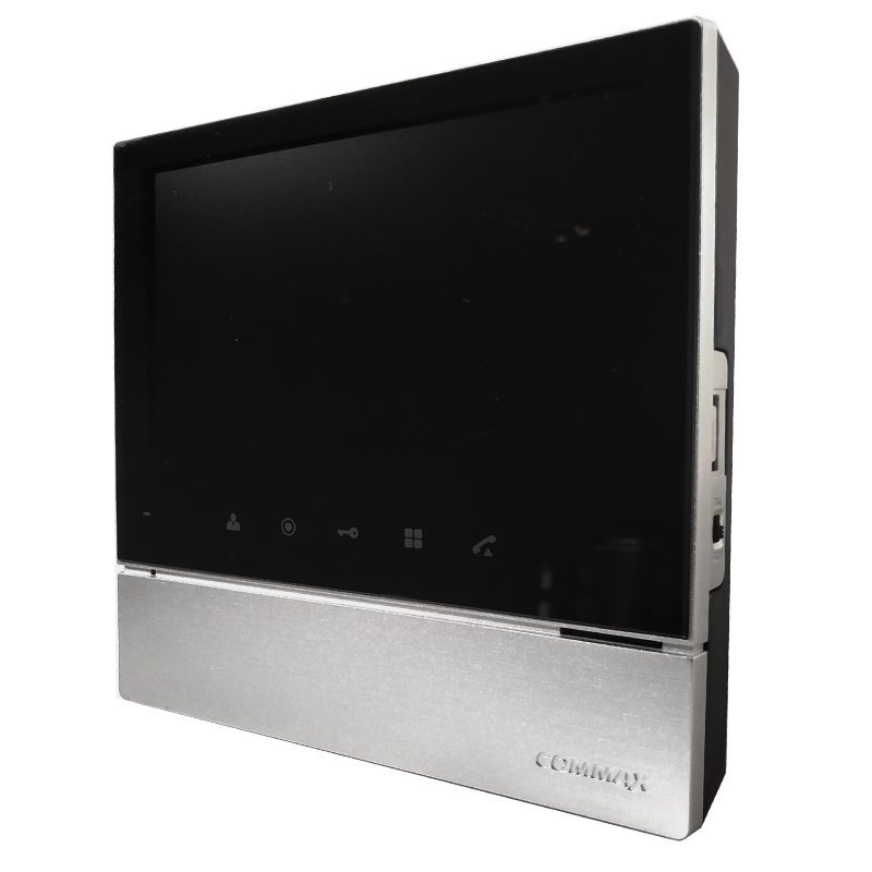 Commax 70H2 (серебро / черный) Цветной видеодомофон без трубки на 2 камеры. Экран: 7 дюймов (17,78 см) LCD TFT с LED-подсветкой, обеспечивающей чёткое и насыщенное изображение. CDV-70H2 позволяет увидеть на экране монитора посетителя, позвонившего в вызывную панель, поговорить с ним, открыть электромеханический или электромагнитный замок нажатием кнопки на мониторе.