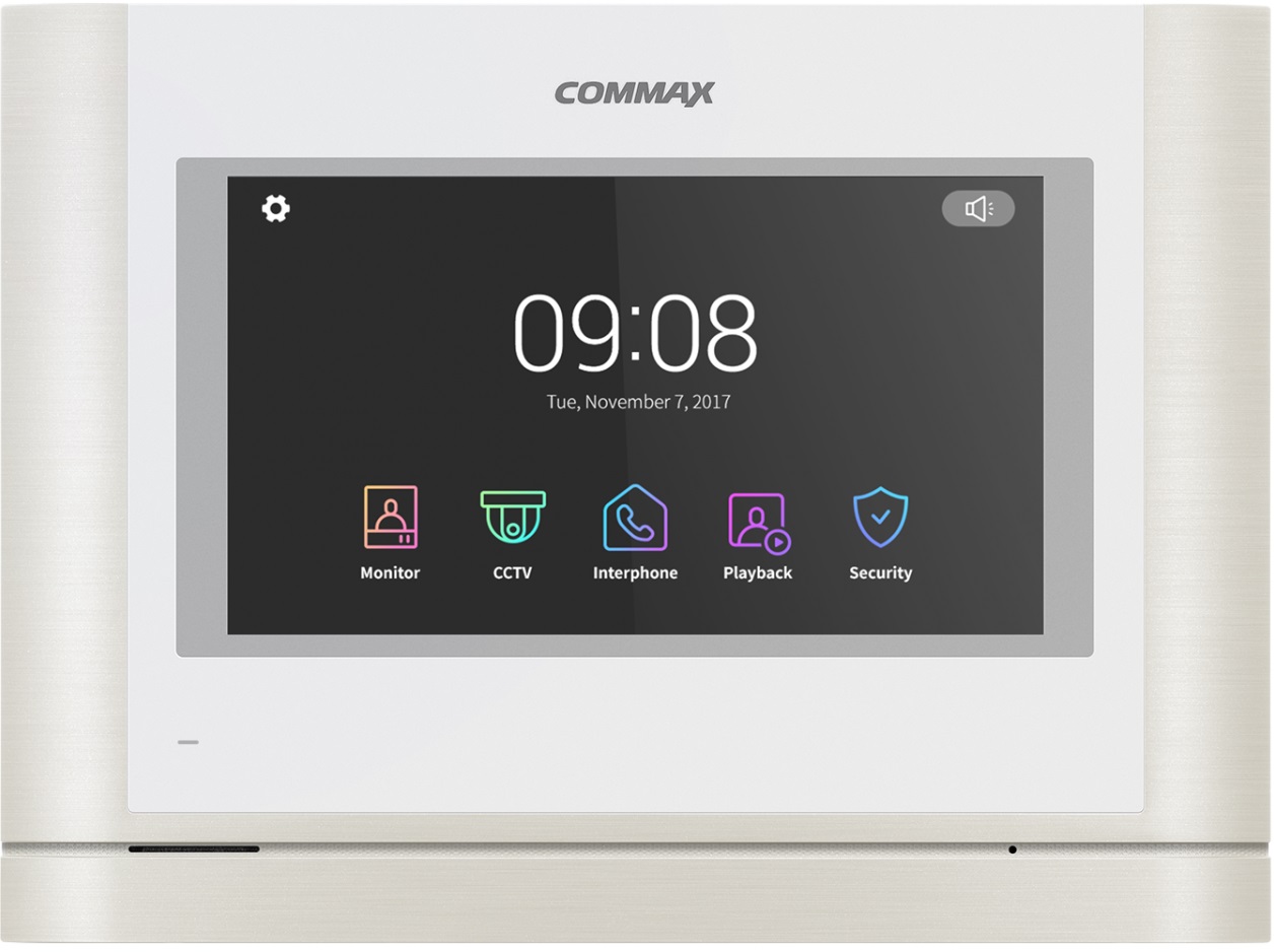 Commax CDV-70MF XL — сенсорный LCD монитор видеодомофона 7.0" AHD. Разрешение экрана1024х600, вызов аудио/видео (при наличии камеры) от координатного подъездного домофона +3-х вызывных блоков.Управление 3 эл/мех./магн.замками. Автоматическая запись видео и фото при вызове, запись по детектору движения. Память MicroSD до 256Гб. Охранные функции. Питание осуществляется переменным током напряжением 100-240В, 50/60 Гц. Цвет: белый, Синий.