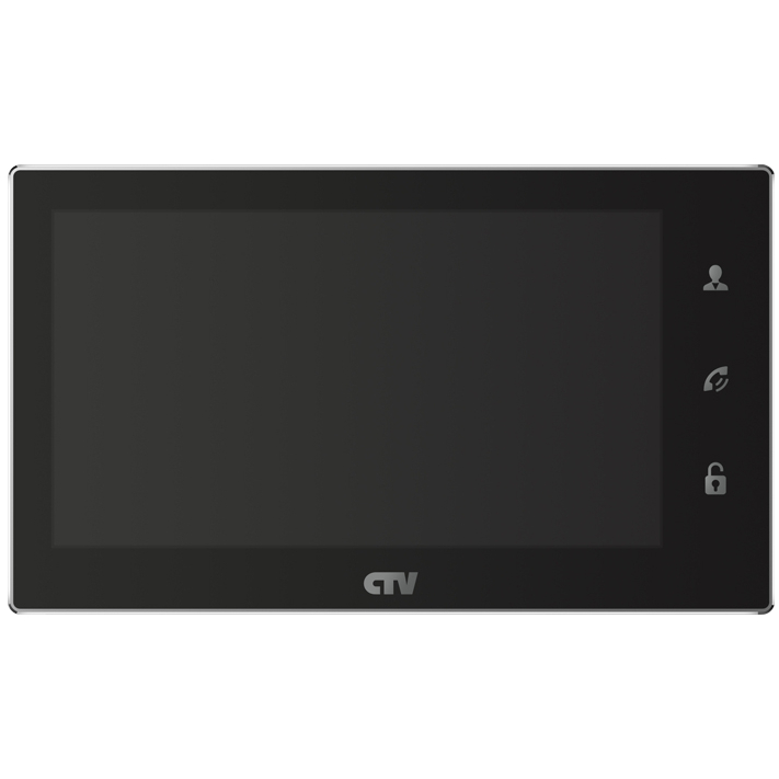 Новый видеодомофон CTV. Размер экрана 7" с поддержкой разрешения Full HD с сенсорным управлением и детектором движения. Работа с подъездными домофонами координатного типа.