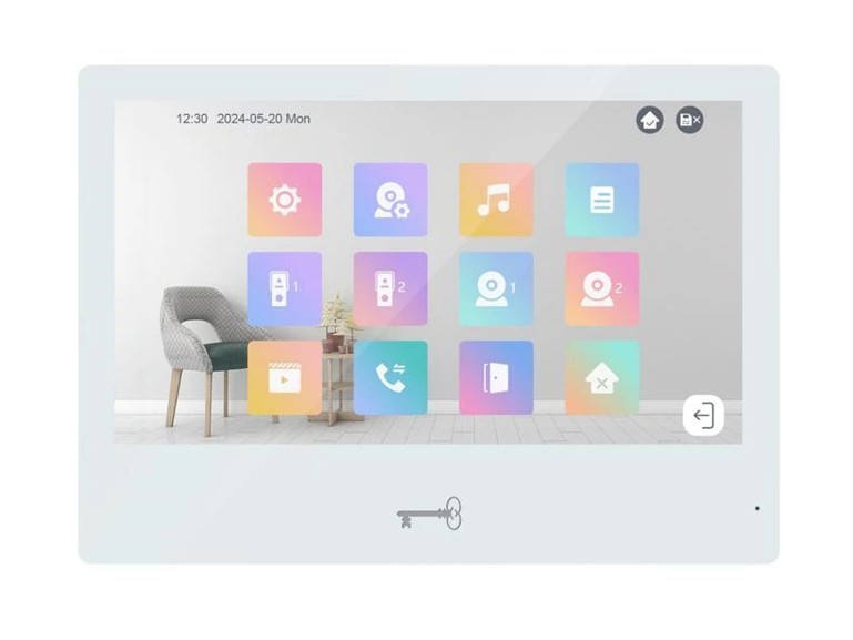 Видеодомофон IP 7 дюймовый с WiFi 2.4ГГц, белый 1024x600 разрешение, ёмкостной сенсорный экран; тревожные входы / выходы 6/1; LAN; Возможность просмотра IP видеокамер; Питание: DC 12В/PoE; Габаритные размеры: 190 мм × 135 мм × 26 мм; Установка - на стену.