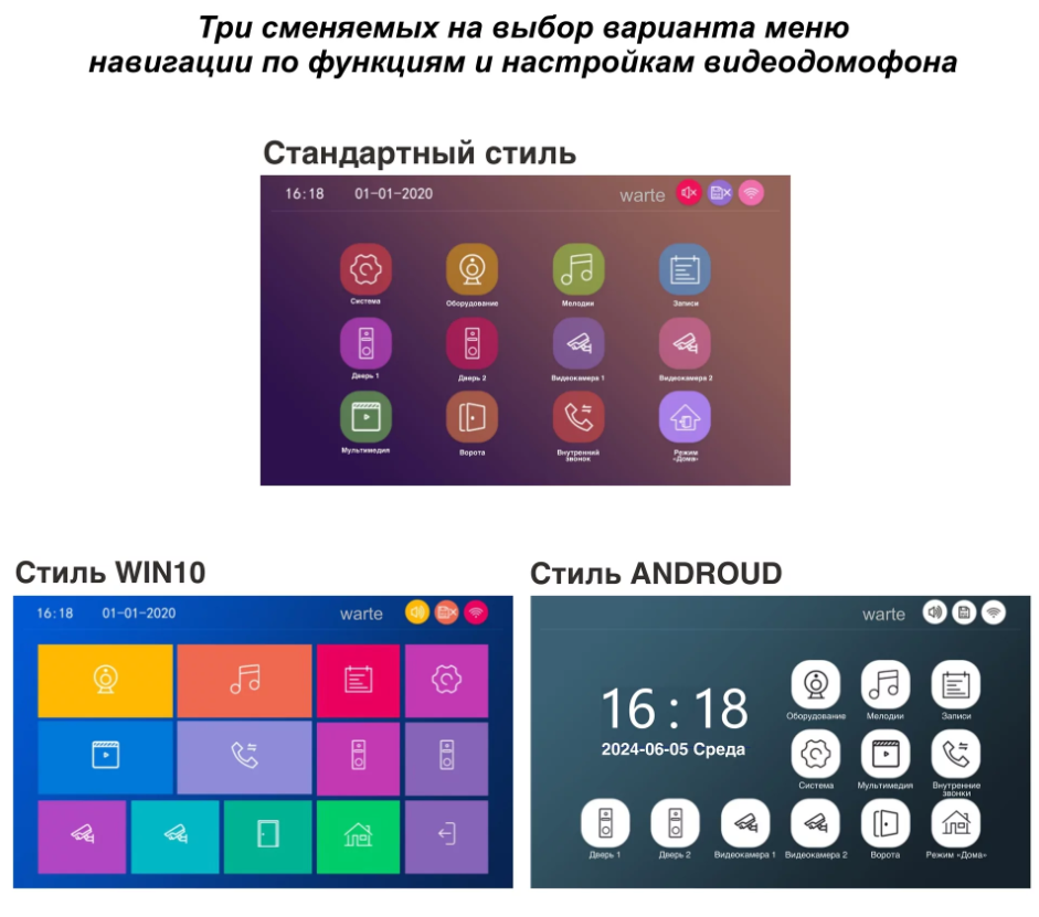 Заказать WARTE-iDM10-10M MHD белый (СИМФОНИЯ) видеодомофон с сенсорным 10" экраном c записью по детекции движения и моб. приложением вы можете либо с доставкой по Москве или в любой город России (подходящей вам транспортной компанией или службой доставки). Так же вы можете оформить самовывоз из офиса компании Видеотехнология в г. Москва.