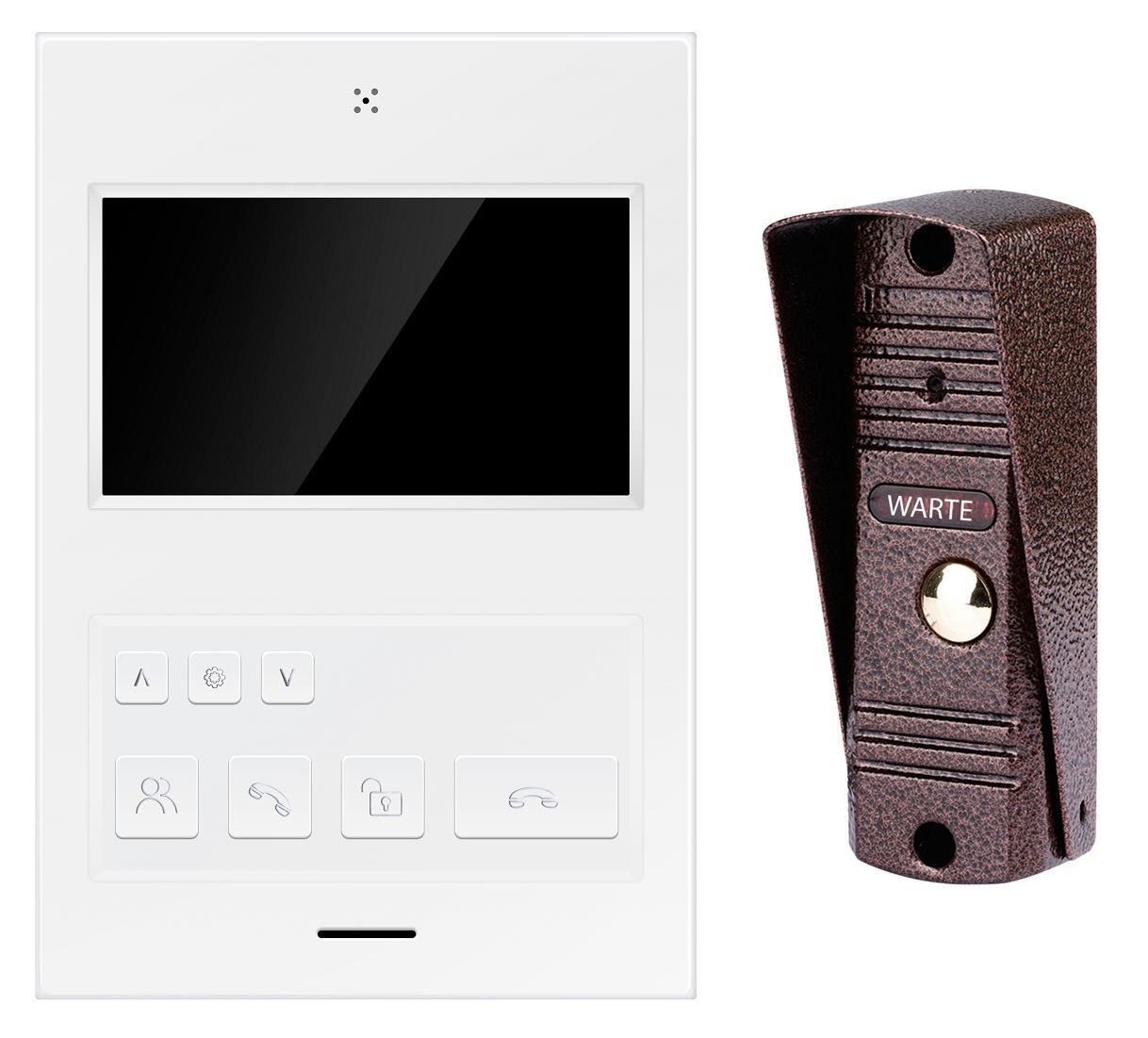 WARTE-04-01 белый/медь PAL комплект 4,3" видеодомофона с вызывной панелью