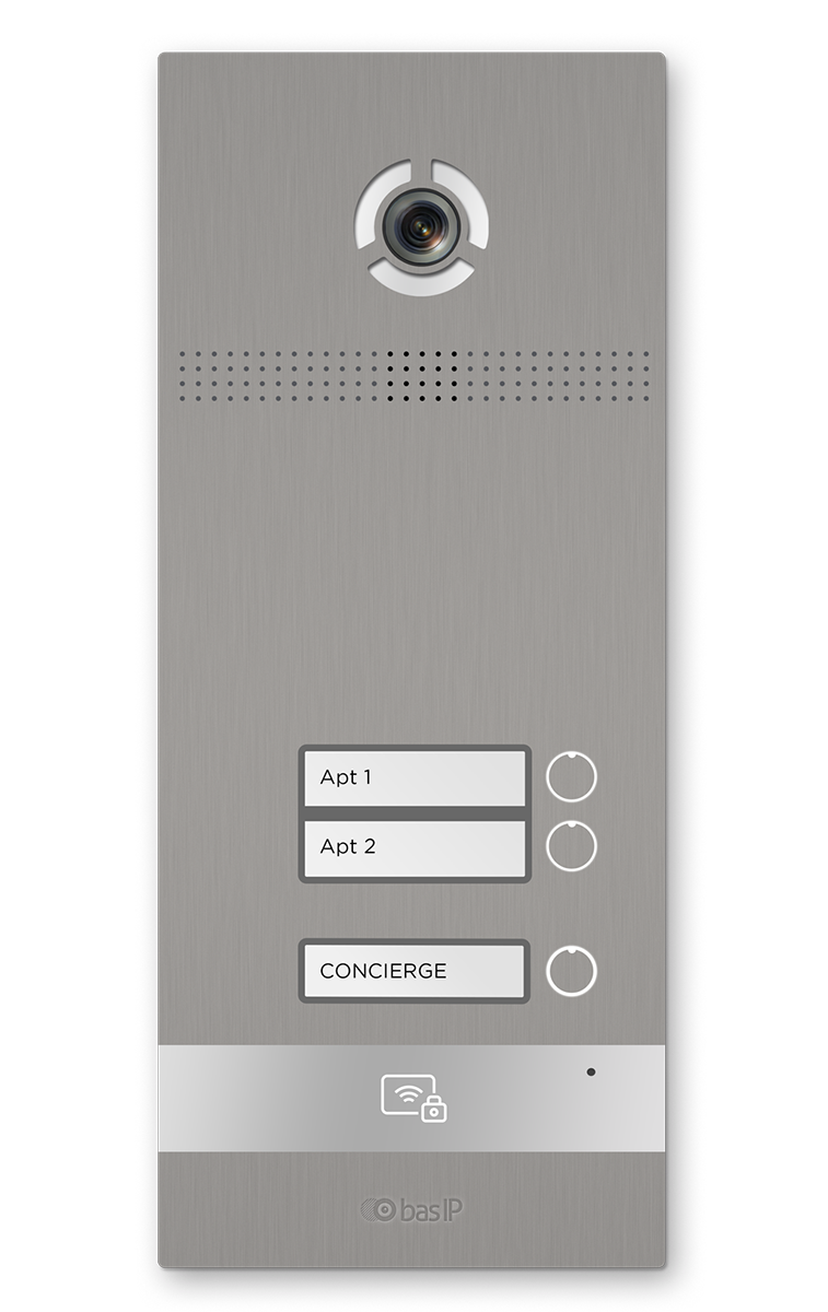 Уникальная вызывная панель на 2 абонента в стильном дизайне.BI-02FB доступна в золотом, серебряном и черном цветах. Она оснащена широкоугольной камерой и поддерживает мобильный доступ BAS-IP UKEY.