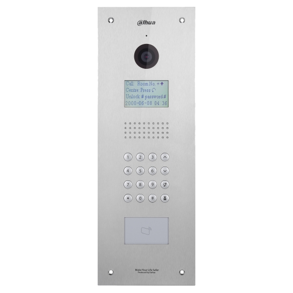 Многоабонентская вызывная IP панель; 3 дюймовый STN Экран; 1.3MP CMOS видеокамера; Материал: Алюминий; Открытие замка паролем или IC картой; WEB интерфейс; LAN; Подсветка в ночное время; Врезной монтаж; Питание DC 12В или VTNS1060A; Габаритные размеры: 406.0mm*143.0mm*42mm;