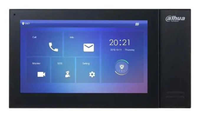 Монитор видеодомофона IP Dahua DH-VTH2421FB 7 дюймовый, черный 1024x600 разрешение, ёмкостной сенсорный экран; тревожные входы / выходы 6/1; LAN; встроенная карта памяти до 8Гб.