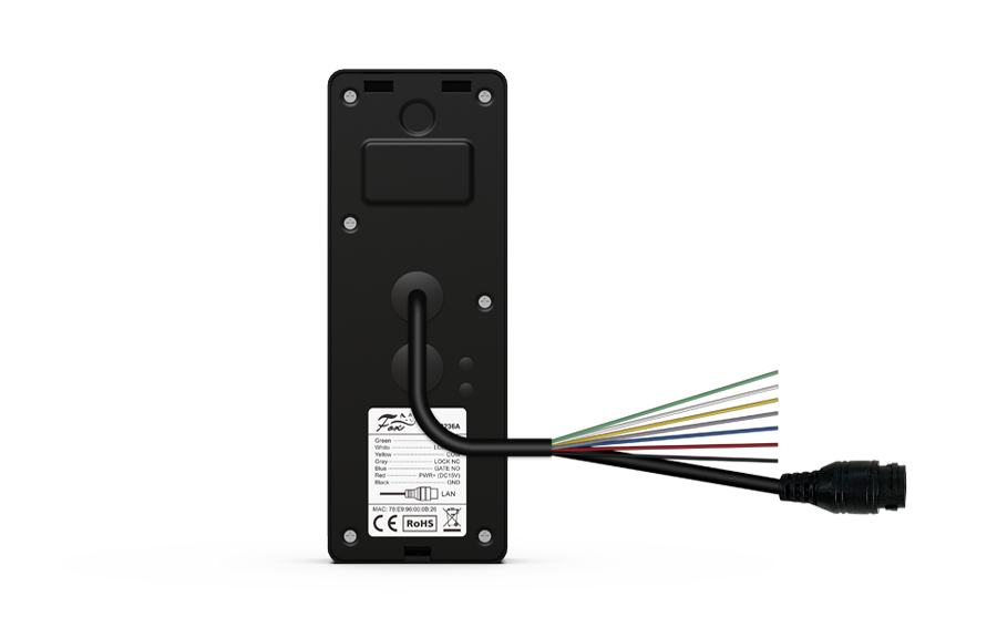 Монтаж Накладной Подключение LAN LAN 10 / 100 Mbps адаптивный интерфейс Ethernet Сетевой Протокол TCP/IP, RTSP, Onvif Реле Сухой контакт для управления замком двери NO/NC Считыватель Встроенный на 100 Mifare карт Питание POE IEEE 802.3af / DC 12-15В, 0.8A