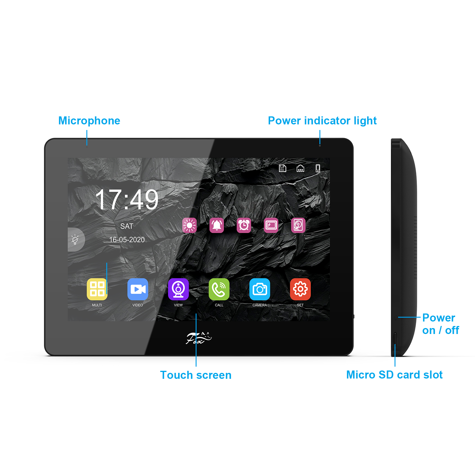 7 дюймов экран 3 панели подключение 1 камера+подъезд Сенсорные кнопки 179,6*180*28мм Поддерживает подключение к домофонам таких производителей как: Raikman Proel Marshal Ростелеком Rainman Xvoice Filman