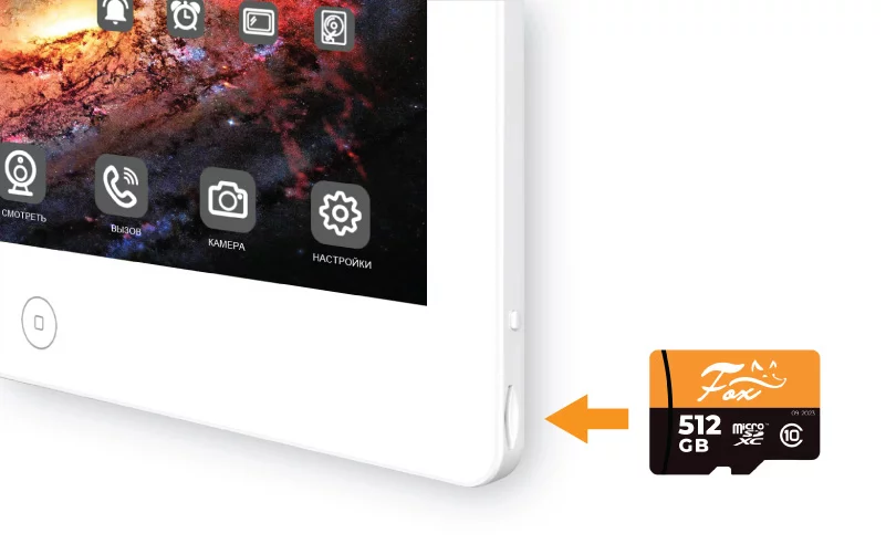 FX-IVD800WPE АНДРОМЕДА 8W IP&WIFI видеодомофон с функцией NVR и КВАДРАТОРОМ В режиме мультикартинки можно просматривать изображение с 4 камер или