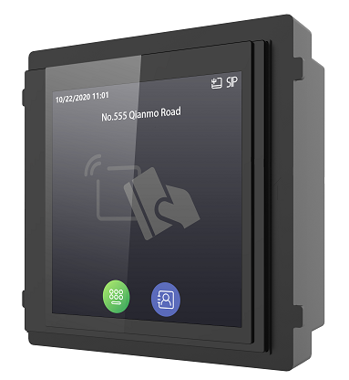 Модуль сенсорной клавиатуры со встроенным считывателей 4‘’ IPS сенсрный экран, разрешение 480*480, сенсорный экран, сенсорная клавиатура, встроенный Mifare и E-Marin считыватель, режим сценарии: ввод номера комнаты, ввод пароли доступа, показ списка вызова,демонстрация рекламного видеоролика; IP65, IK8; размер 100*100*35мм;
