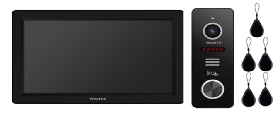 Комплект видеодомофона состоящий из одного 7" видеодомофона WARTE-IP-iDM7-05M (ТАНГО IP) с сенсорным IPS экраном и одной всепогодной вызывной панели WARTE-IP-DP-03PR (АЛЬТ IP) с встроенным считывателем и контроллером карт доступа Em-Marine 125KHZ (до 200 карт). Разрешение видео 2Mp. Поддержка карты памяти MicroSD до 1Tb (1000Гб). Функция видеозаписи по вызову и детекции движения (в т.ч. режим только на человека) для всех каналов, мобильное приложение Android и IOS, Wi-Fi, LAN. Питание POE. Сетевое подключение 3 монитора интерком и 2 вызывные панели с управлением эл. замком + автоматика для ворот.