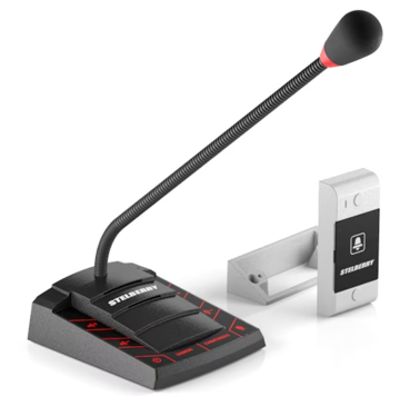 Дуплексное переговорное устройство "клиент-кассир" с вызовом, управлением встроенного в панель клиента реле (открытие замка), возможностью переключения в режим «Симплекс» и выходом для записи переговоров. В комплекте идёт пульт кассира, панель абонента с вызовом и реле и блок питания.