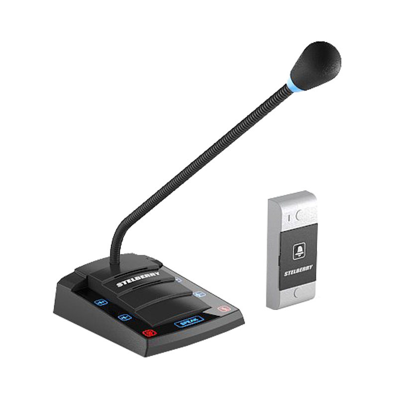 Дуплексное переговорное устройство "клиент-кассир" с выходом для подключения усилителя индукционной петли для слабослышащих, возможностью переключения в режим «Симплекс», абонентской панелью с функцией "Вызов" и выходом для записи переговоров. В комплекте идёт пульт кассира, панель абонента, гарнитура и блок питания. Подключается к усилителю Stelberry S-350.