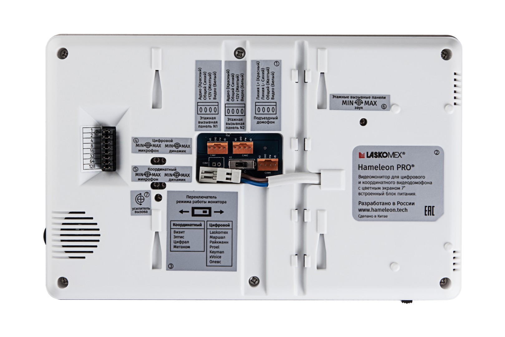 Гибридный 7" видеомонитор для домофона был создан нами специально для российского рынка. Мы учли потребности наших частных клиентов и монтажных компаний и создали универсальный видеомонитор, который работает одновременно как с координатными домофонами, так и с цифровыми. Теперь Вам не нужно думать, подойдет ли видеомонитор к вашему домофону, Вы просто выбираете Hameleon PRO и он работает.