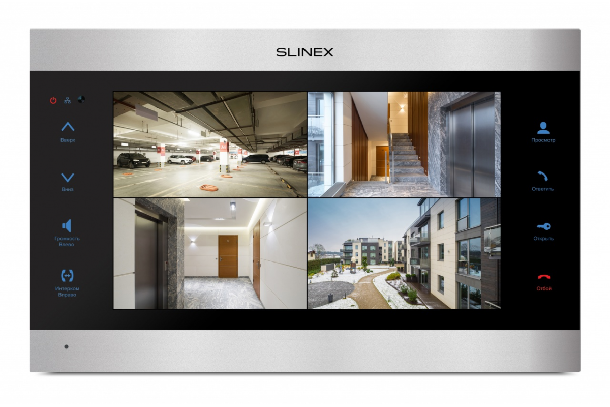 1080P цветной, настенный, 10” сенсорный IPS TFT экран 16:9, разрешение экрана 1024×600. Подключение 2-х панелей и 2-х камер любого из стандартов: AHD/TVI/CVI/CVBS до 2 Мп либо 2-х камер IP до 2Мп. Запись фото или видео на SD-карту до 256 ГБ. Интерком до 4-х домофонов: SL-10M(HD), Sonik 10, SL-07M(HD), SQ-07MT(HD), SM-07M(N/HD), Sonik 7, SQ-04M; SL-07IP(HD) и SL-10IPT(HD), а также SM-07N/SL-07N/SL-10N/Sonik 7 Cloud могут быть только основными при соединении в интеркоме. Получение входящего вызова от вызывных панелей на смартфон, подключение к сети Ethernet, квадратор, функция DVR (запись по всем четырем каналом по детекции движения или по расписанию), встроенный Wi-Fi. Удаленный просмотр дополнительных камер и вызывных панелей. 16 полифонических мелодий. Режим «Не беспокоить», заставка с часами. Потребляемая мощность – до 12 Вт. Питание: ~100-240 В или +13,5 В. Размеры: 305×190×24 мм. Цветовые решения: серебро+черный, серебро+белый. Рекомендуется использовать с ML-20HD.