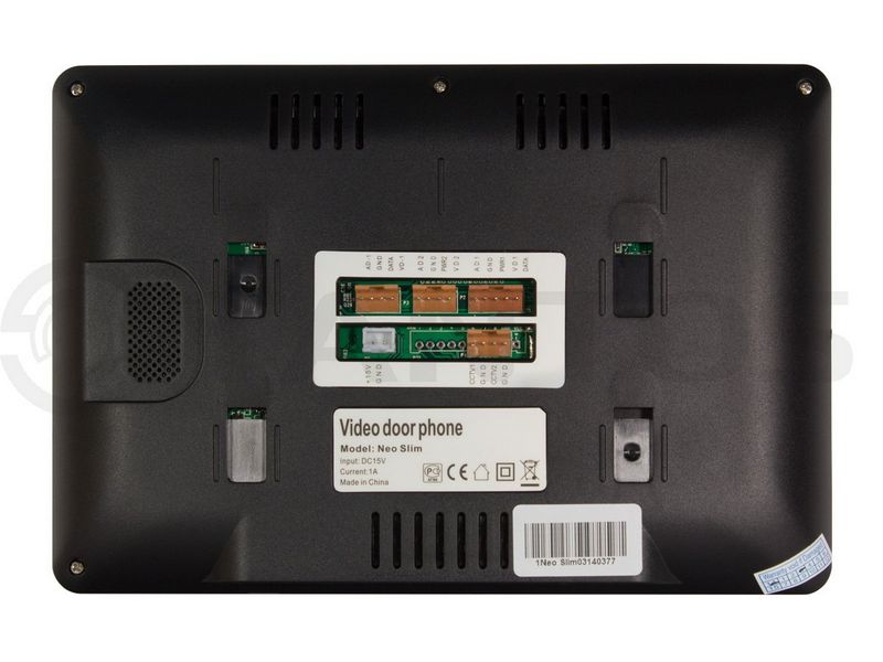 В комплект входит только сам видеодомофон, разъемы для подключения, накладной кронштейн и крепежные элементы.