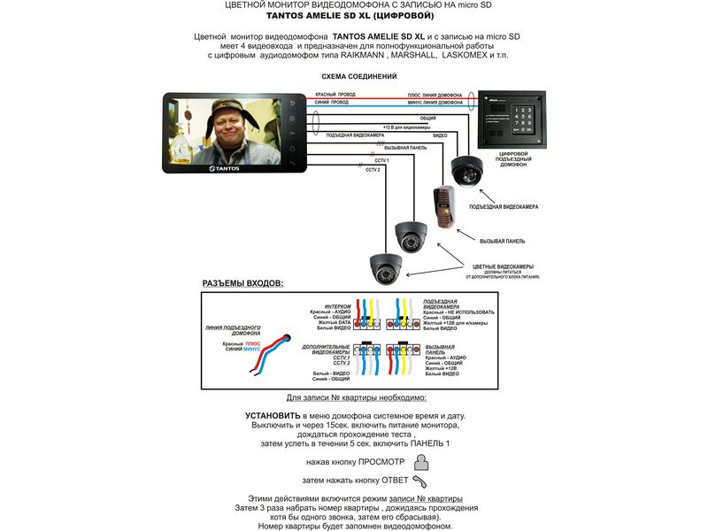 Оборудование выполнено без аудиотрубки. Связь осуществляется через режим голосового вызова. Надежность и качество домофона подтверждено гарантией от производителя. Заказать Tantos Ameile-SD-XL можно на сайте в режиме онлайн или связавшись с менеджерами интернет-магазина по телефону. Доставка предусмотрена по всем городам России.
