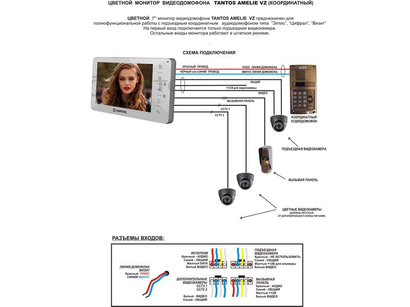 AMELIE-HD-VZ - Модификация с подключением к подъездному домофону - VIZIT, ELTIS, CYFRAL, КС-ДОМОФОН, ФОРТ, МЕТАКОМ