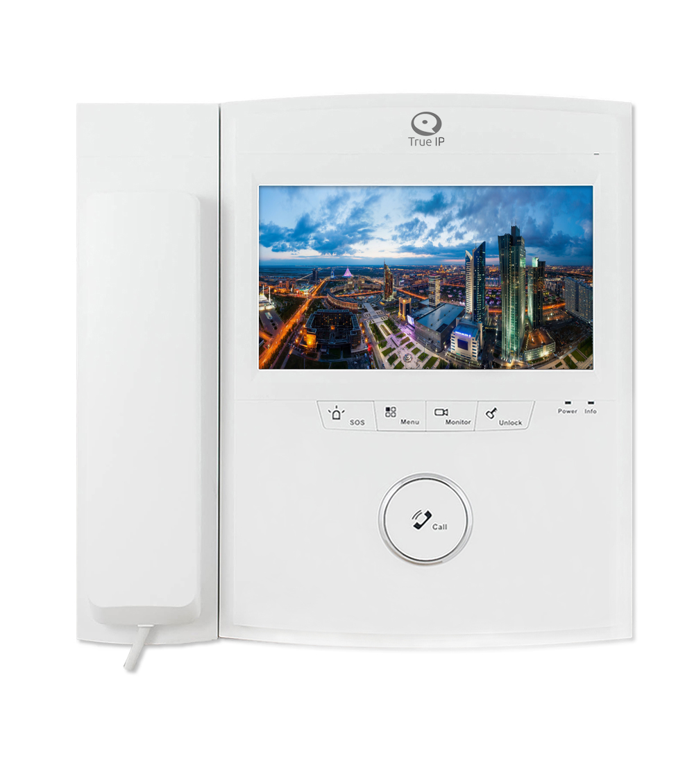 7’’ LCD, 800x480 258x262x34 мм Память 4Gb Дополнительная трубка Hands Free Сенсорный, резистивный экран 5 механических кнопок OS Linux DC12V или POE (TI-6SP) -10…+55ºC SIP | TCP/IP | RTSP | DTMF Подключение до 32 панелей и 32 камер Белый цвет