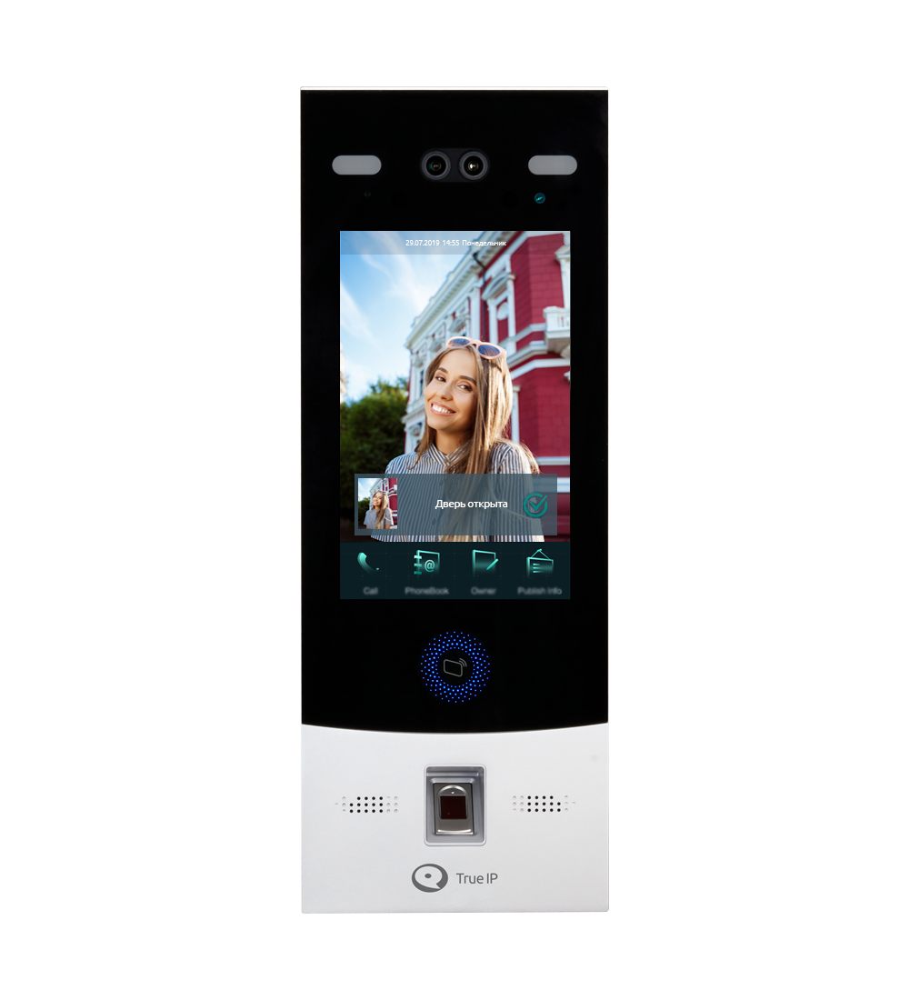 SIP | TCP/IP | ONVIF | RTSP | DTMF Отпечаток пальца (память 10000 отпечатков) Распознавание лиц (память 20000 лиц) Считыватель Mifare Classic 1k (память 10000 ключей) Режимы: сервер или клиент для SIP сервера 2 Mp IP камера Реле упр. замком (2-ой замок через реле TI-1SR) Питание DC12V / 2A Корпус из литого алюминия и ударопрочного стекла Подсветка в ночное время 389x145x43 мм Ожидание - 12Вт | работа - 24Вт -20…+60ºC | IP66 | IK07 Подключение доп. считывателя Mifare Wiegand IN