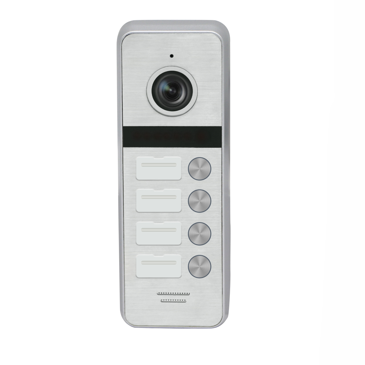 Вызывная 2,0Mп AHD 4-х абонентская антивандальная цветная видеопанель Разрешение 1080p, Матрица CMOS 1/2,7" ,Объектив 1,9 мм (угол 130 °), 4-х проводное подключение. Питание 12В (от домофона) ИК-подсветка 1,5 м (угол 120 °). Вес 350 гр. Габариты 130х45х20 мм Рабочий диапазон температур -40…+50 °С Цвет Серебро. Корпус алюминий IP65