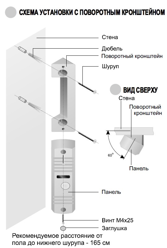 - Внимание! Не рекомендуется устанавливать вызывную панель на подвижную часть двери во избежание поломок встроенной видеокамеры.