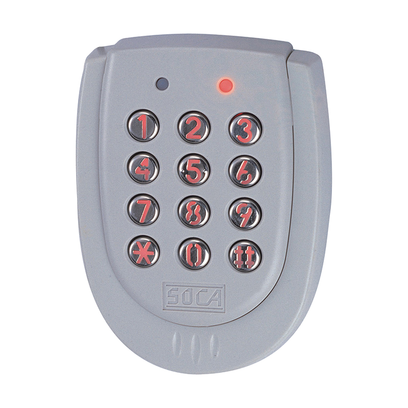 Накладная кодонаборная панель. До 80 пользователей. Корпус - влагозащищенный, жаропрочный поликарбонат, кнопки - металлизированные, с подсветкой. Световая и звуковая индикация. Защита от вскрытия. Питание: 12В, 130 мА - в режиме ожидания, 150 мА - в рабочем режиме. Габариты:107х80х18 мм.