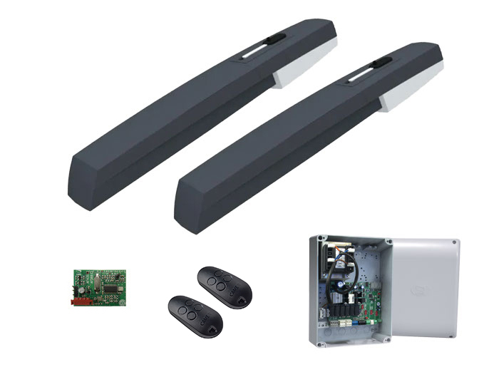 AXL20DGS Привод 24В, линейный, самоблокирующийся для створок до 2,2 м Многофункциональный блок управления для двустворчатых распашных ворот с дисплеем, радиодекодером Радиоприемник встраиваемый 001AF43S Брелок-передатчик 4-х канальный с динамическим кодом 806TS-0130 Фотоэлементы / передатчик, приемник / накладные, дальность 10 м. 001DIR10