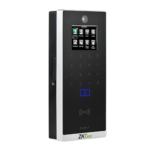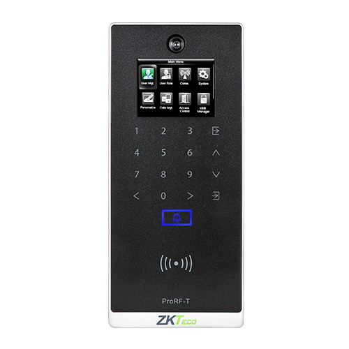 Терминал контроля доступа ProRF-T позволяет считывать RFID карты и имеет встроенный цветной 2,4” TFT ЖК-дисплей, сенсорную клавиатуру, удобное меню для настройки и управления. Терминал обладает функцией фотосъемки. Новая аппаратная платформа ZMM220 имеет тактовую частоту 1,2 ГГц, что значительно ускоряет проверку.