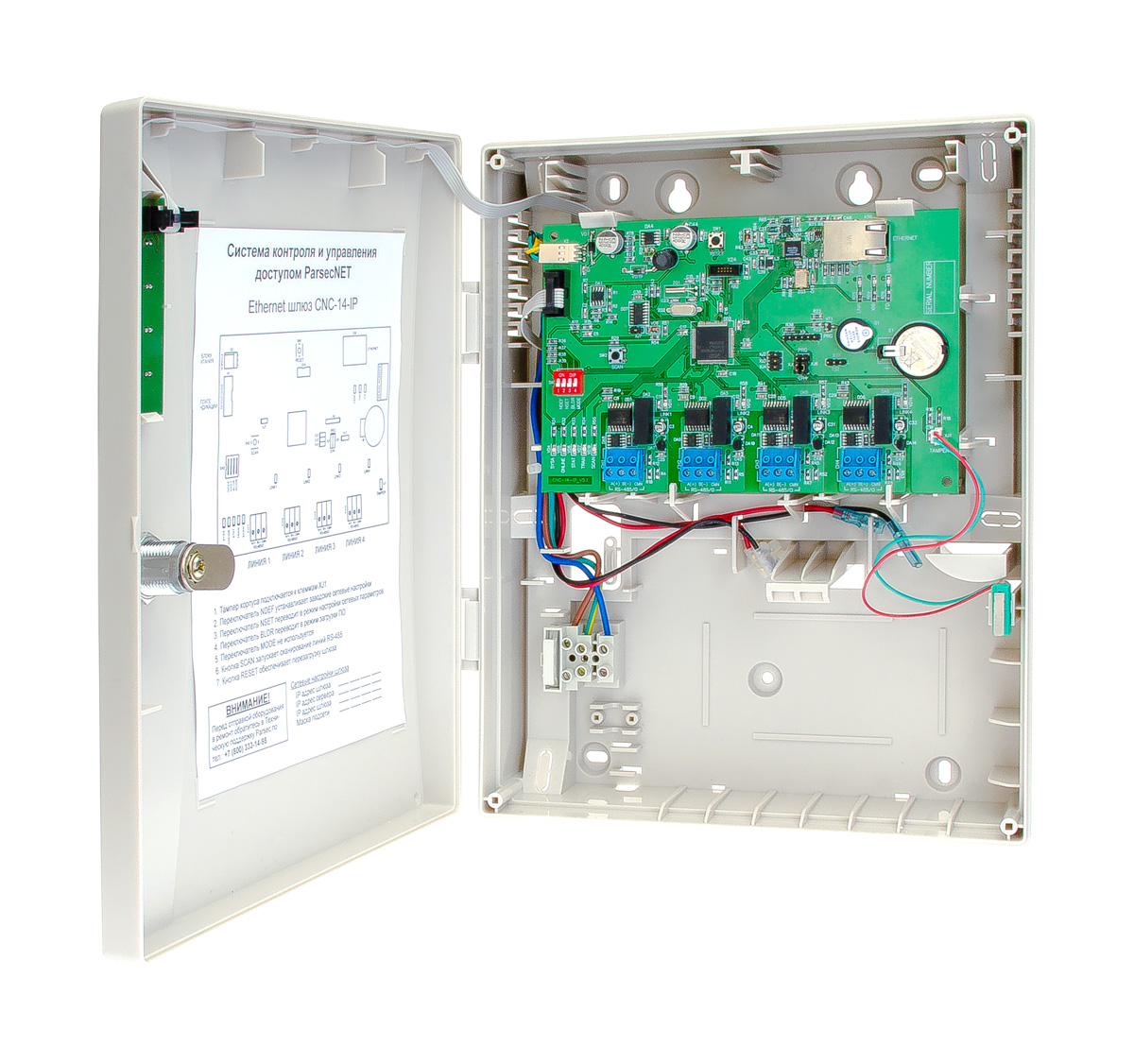 thernet-шлюз CNC-14-IP — это ключевое устройство для построения современных, распределенных и высокопроизводительных систем контроля и управления доступом (СКУД) на платформе ParsecNET 3. Его основное назначение — интеграция удаленных сегментов системы в единую сеть с использованием стандартной Ethernet-инфраструктуры.
