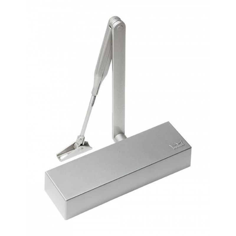 дает распахивание створки на 150°. Возможно отрегулировать усилие закрывания (пределы: EN3 — EN4) поворотом несимметричной лапки рычага на 150°. Плавно регулируется скорость движения дверной створки (дохлоп). Присутствует функция «Latch action», необходимая для фиксирования двери в случаях сопротивления уплотнения, трений створки об раму и т.п.