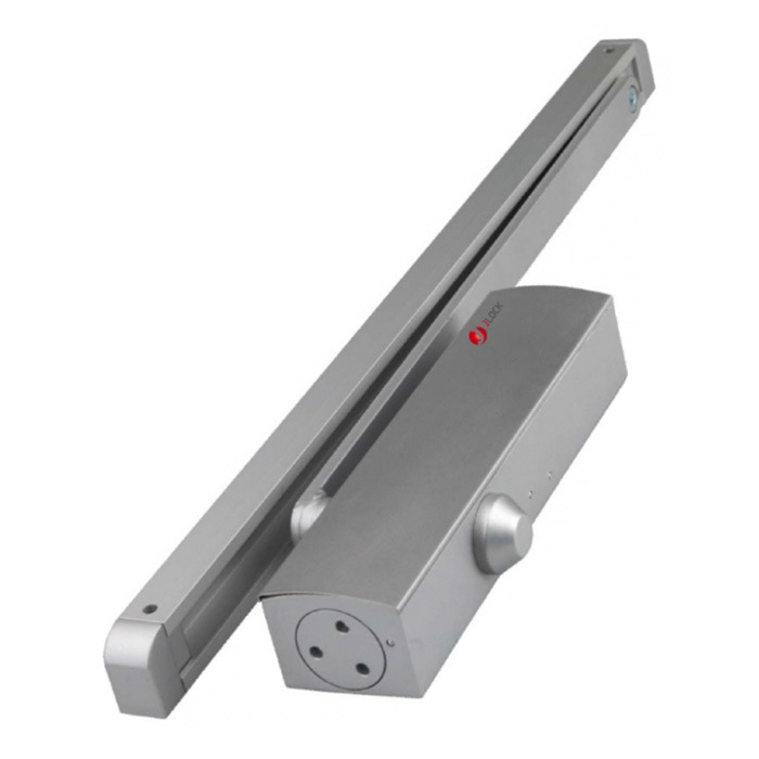 Доводчик со скользящей тягой для дверей весом до 65 кг, двухскоростной, габариты 220х55х42 мм, -45…+60°С, цвет-серебро