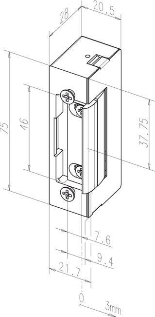 ЭМЗ стандартная, HЗ, без планки, переставляемый язычок, длительная электрическая разблокировка, 12V DC 270мА, -15 °C to +40 °C