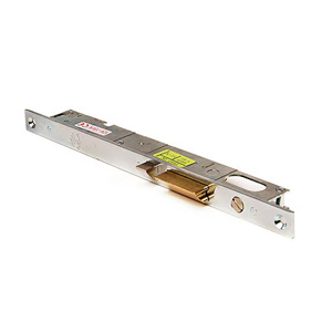 Замок имеет только электрически управляемую защелку: взводной и запорный ригели. Запорная защелка имеет противоотжимный блокировочный механизм при закрытом состоянии замка. Цилиндровый механизм овальной формы позволяет механически открывать замок. Замок нереверсивный: существует два варианта замка для правых(14020.18.1) и левых(14020.18.2) дверей. Видимая лицевая планка и взводная защелка оцинкованные, полированные. Запорная защелка латунная. Класс замка - 2.