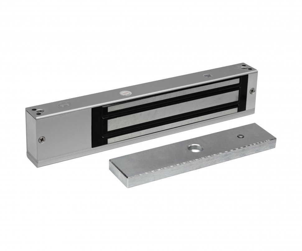 Накладной соленоидный электромеханический замок Н.О. Автоматическое открытие при снятии напряжения. Встроенный датчик положения двери Н.З. Регулируемое время задержки 0 и 3 сек. Питание: DC 12В, 210мА в режиме ожидания и 570mA.в режиме срабатывания. Габариты: к 114х39х27мм, оветная часть 114х27х20мм
