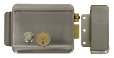 Электромеханический замок, накладной, универсальный (дверь наружу, внутрь), ролик взвода пружины, блокировка ключом в закрытом состоянии, никелированная сталь, 12В, цвет серебро. Габаритные размеры: 163x47x103 мм. Масса брутто: 1300 г.Темп.диапазон -30°С…+50°С