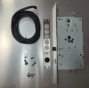 Односистемный цилиндровый замок, три точки запирания, корпус из легированной стали, секретность зависит от цилиндра, 4 ригеля плюс защелка, есть возможность установки нажимной ручки. Ручка с антипаникой.